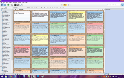 Destiny is different in that it has a larger cast of characters in different geographical locations, so the POV shifts more regularly than it did in Yggdrasil. For this reason, I’m taking advantage of Scrivener’s ability to color code index cards in the corkboard view; each major POV character gets their own color so that it’s easy for me to see if I’ve ignored one of them for too long. I also want to revisit the Scrivener tutorial to see if there are other tools I didn’t use in Yggdrasil that might serve me well in Destiny. There is a lot more history in this story, a lot more notes on the way things work from government to magic. I haven’t been idle all these years, I’ve built up quite a skeleton for this story. Now I have to put some meat on the bones.